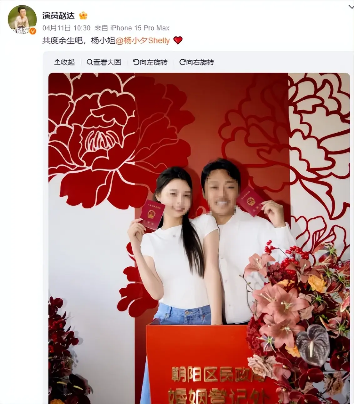 4月11日,赵达在社交平台晒出红底结婚照,配文就十个字:“共度余生吧,杨小姐”,温柔又真诚。几乎同时,新娘杨小夕也同步晒出同款照片,回应“共度余生吧,赵先生”,双向奔赴的样子太好嗑了。据悉,两人特意选在杨小夕生日当天领证,这份暗藏的仪式感,藏着满满的心意。