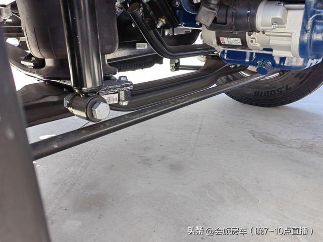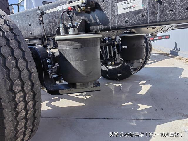 3.0T豪沃底盘前后桥配有四气囊空气悬挂,通过遥控器调节高度,行车舒适性大大提高。3.0T前后桥都配有横向稳定杆,提升车身稳定性。3.0T后桥为5吨鼓式后桥,大梁的高度和宽度也有增加,底盘承载能力提升不少。